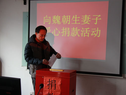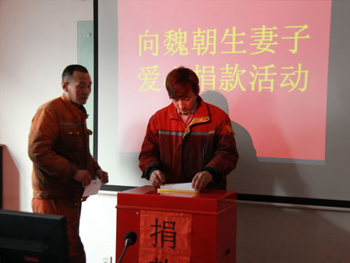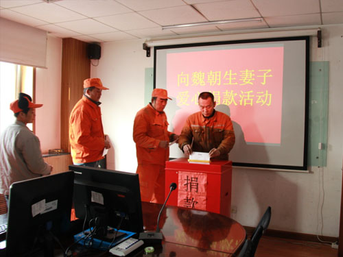 在得知魏朝生爱人不幸身患重病、急需巨额医疗费用这个消息后,董事长章荣会、总裁徐吉龙等公司领导非常重视和关心,马上安排公司行政部门组织全体员工向魏朝生爱人献爱心捐款活动。
