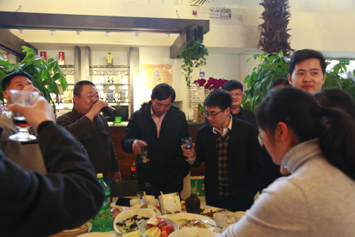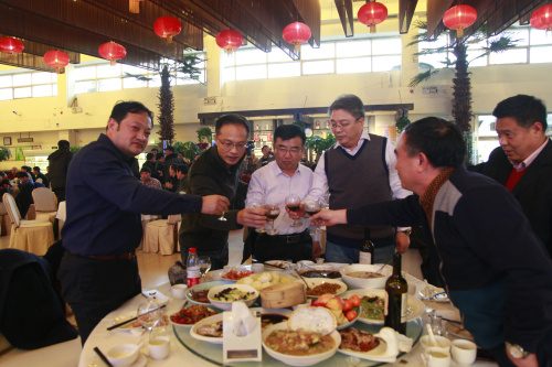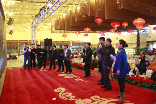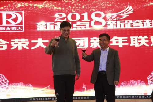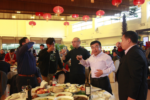 集团董事长章荣会、总裁徐吉龙向全体员工敬酒